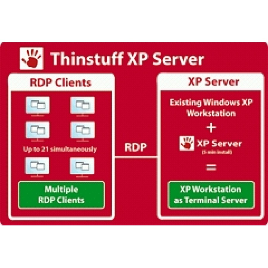 Mit dem Thinstuff XP/VS Server lassen sich u.a.Windows 7, Windows 10,11, Small Business Server 2003/2008, Windows Server 2003/2008 (R2)/2012 (R2)/ 2016 /2019/2022/2025 alsTerminalserver nutzen. Damit ...